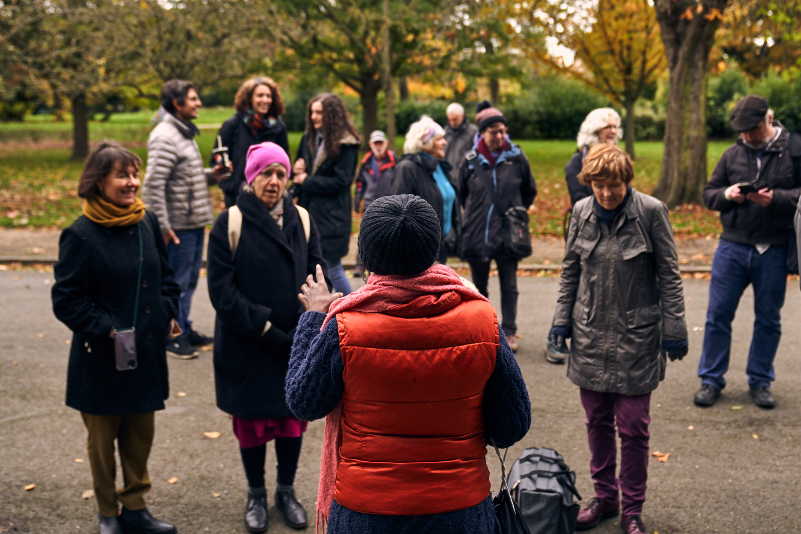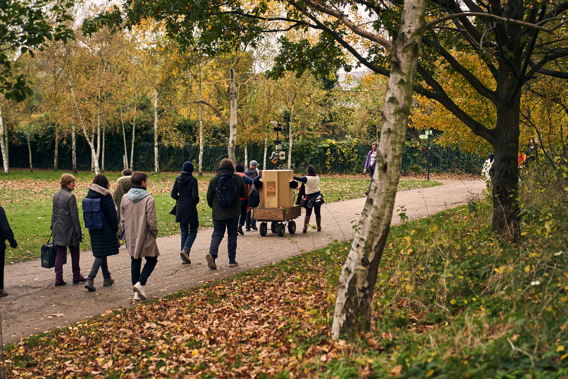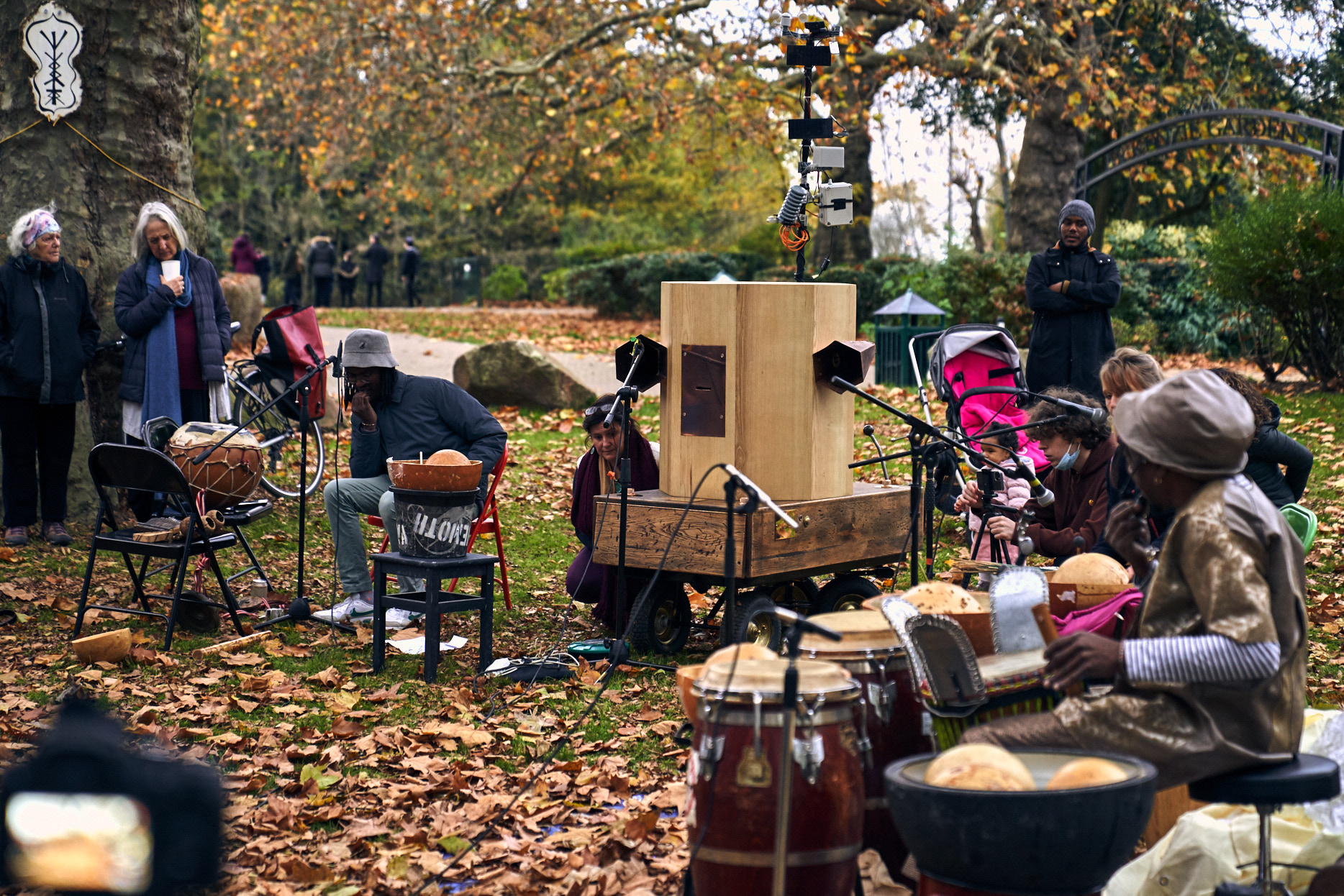 A procession around the park took place as the leaves fell, to celebrate the Autumn. Led by the Future Machine with readings and conversations by Esi Eshun, tree poems by Jo Roach and conversations about the park by Park Ranger Ricard Zanoli and Weeds and Seeds by May DeGrace. Stopping at seven trees in the park to represent the seven sisters myth and the story of the name of Seven Sisters Road that runs alongside the park.