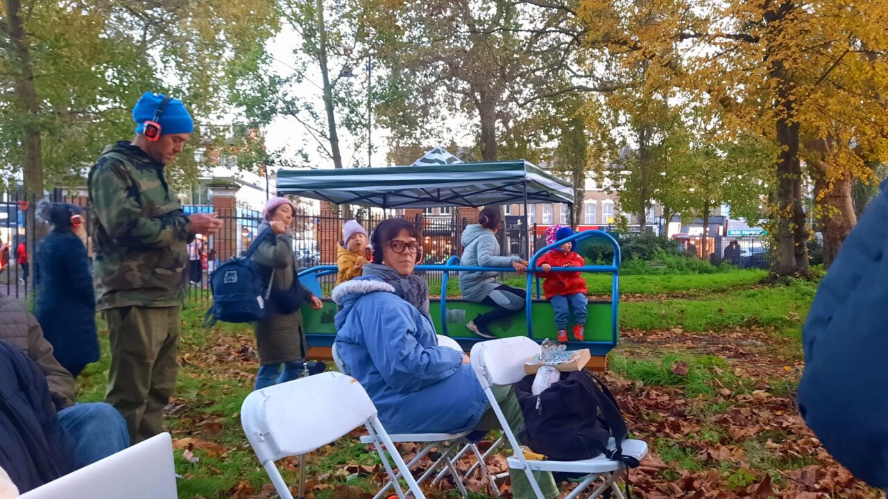Future Machine and the Rainmakers played the music of the weather, providing headphones for people who wanted to immerse themselves in the sounds as they sat amongst the autumnal trees, with the gold, orange and red leaves at their feet, feeling the weather and park around them.