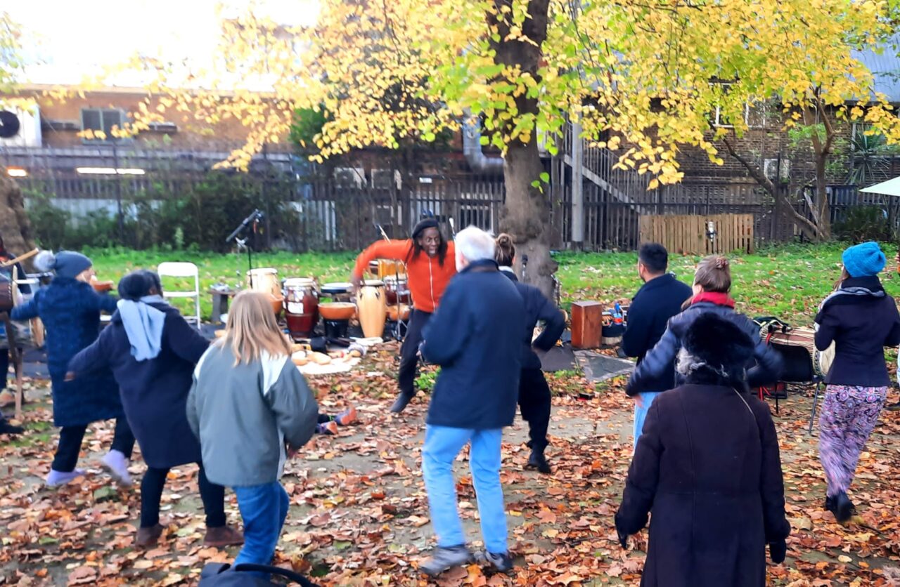 When The Autumn Leaves Fell in Finsbury Park 2023 featured Rachel Jacobs and Future Machine, Alexandre Yemaoua Dayo, Dave Kemp, Esi Eshun, Caroline Locke and the Tree Bell, Shreya Rai, Papia Ghoshal and Miles NCube, vocal, bird song, melody and percussion, Asafo Gyata, dancer and choreographer, The Drumming School Students, Ancient Lyric, Kenny, Rafael and Wayne and Zantagola.